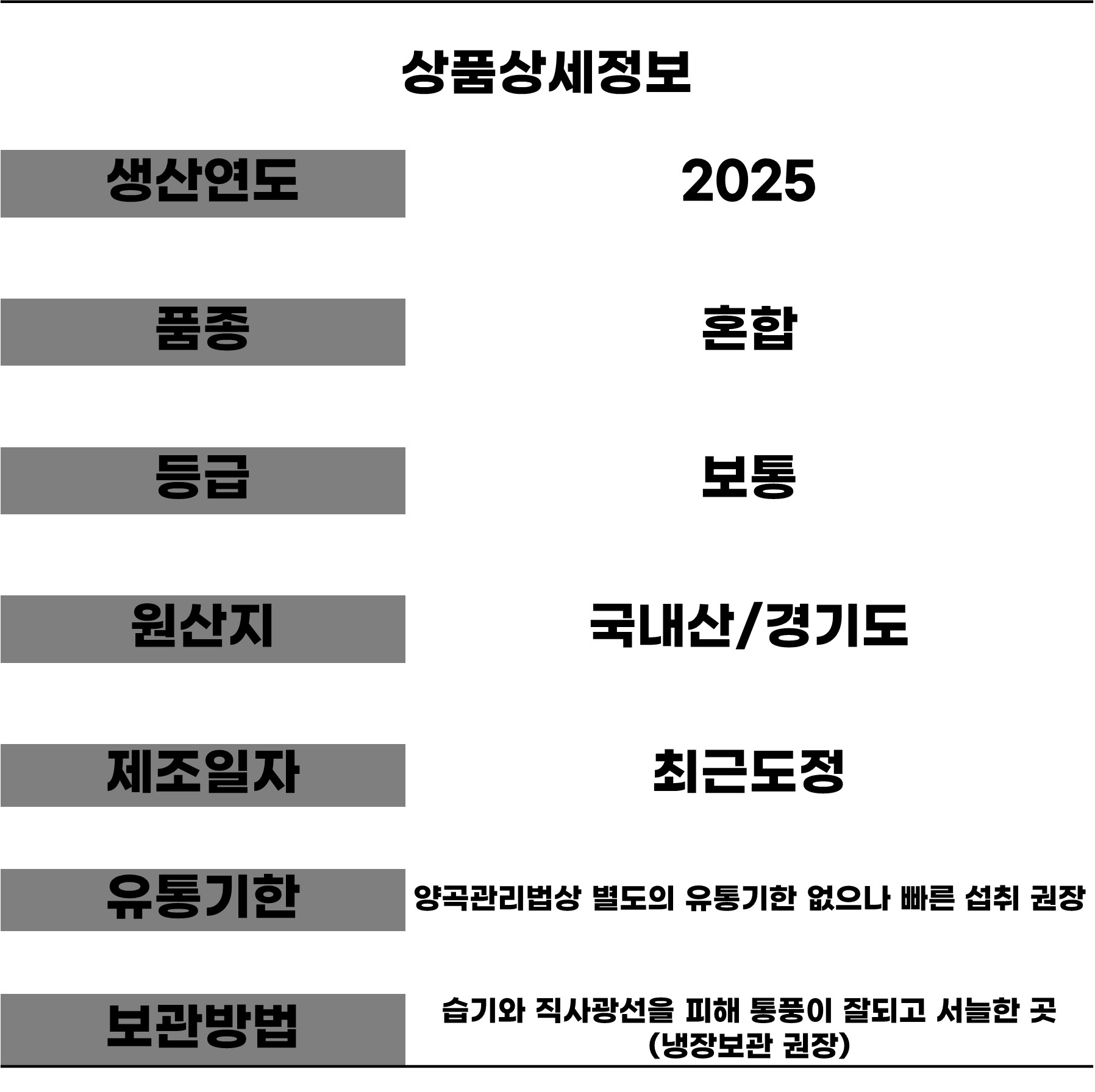 생산연도:2025년산 / 원산지 : 국내산 / 품종 : 혼합 / 등급 : 보통