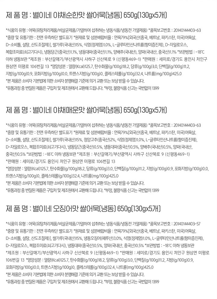 어묵(유탕처리제품/비살균제품/가열하여 섭취하는 냉동식품/냉동전 가열제품)