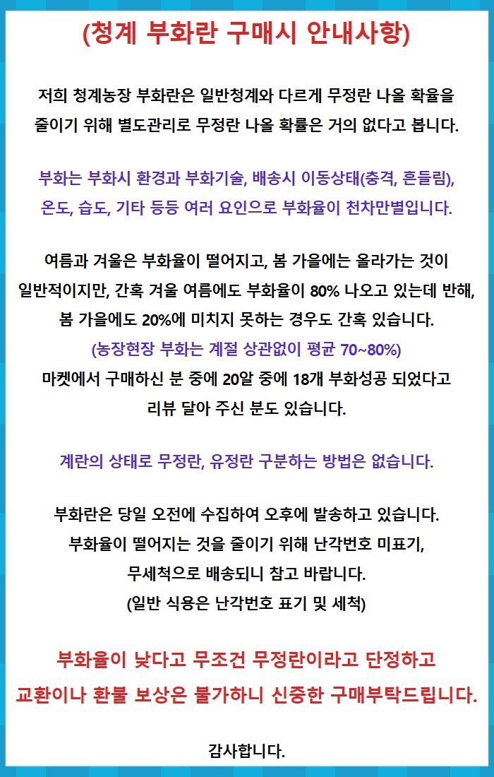 현격히 부화율이 떨어지니 신중한 구매 부탁드립니다.