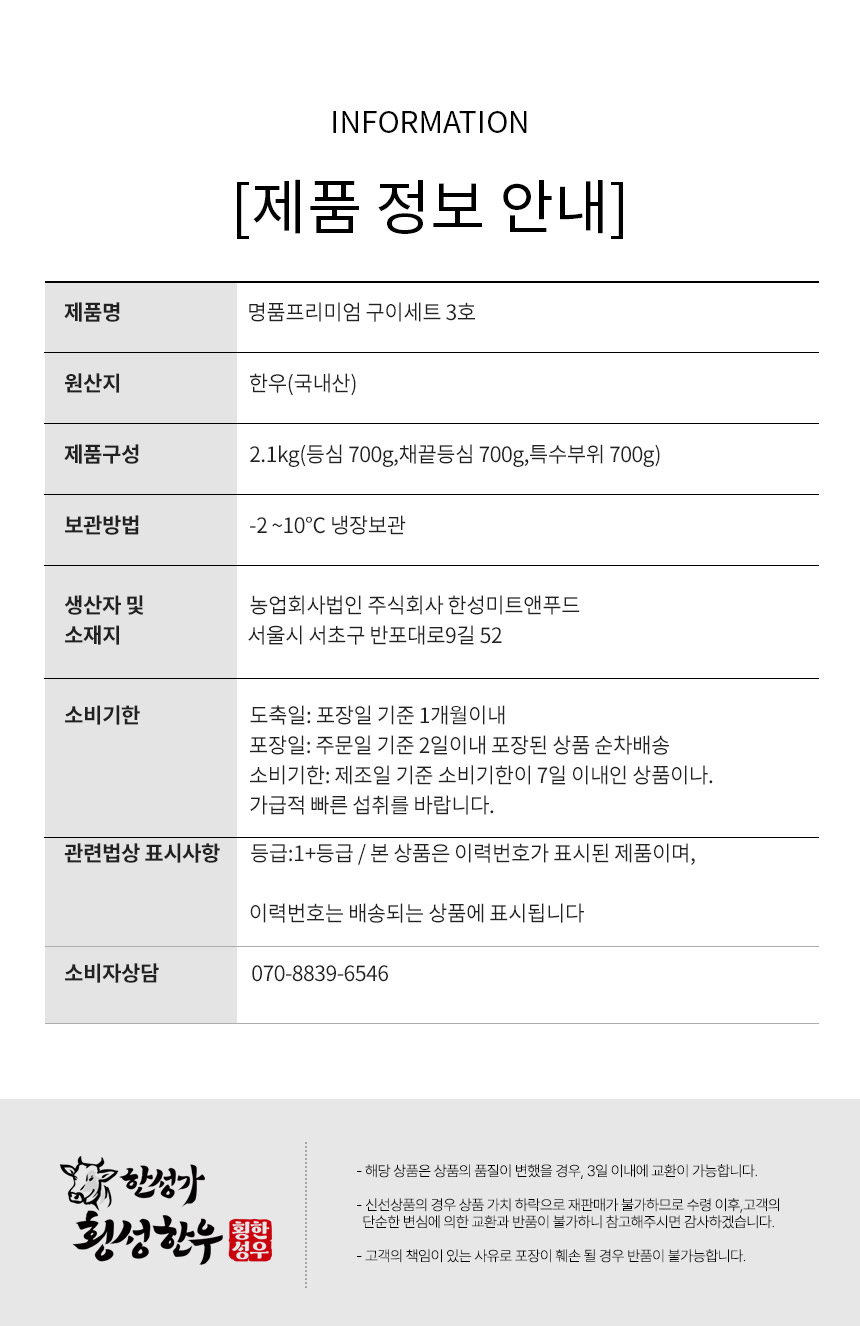 - 등심 700g,채끝등심 700g,특수부위 700g