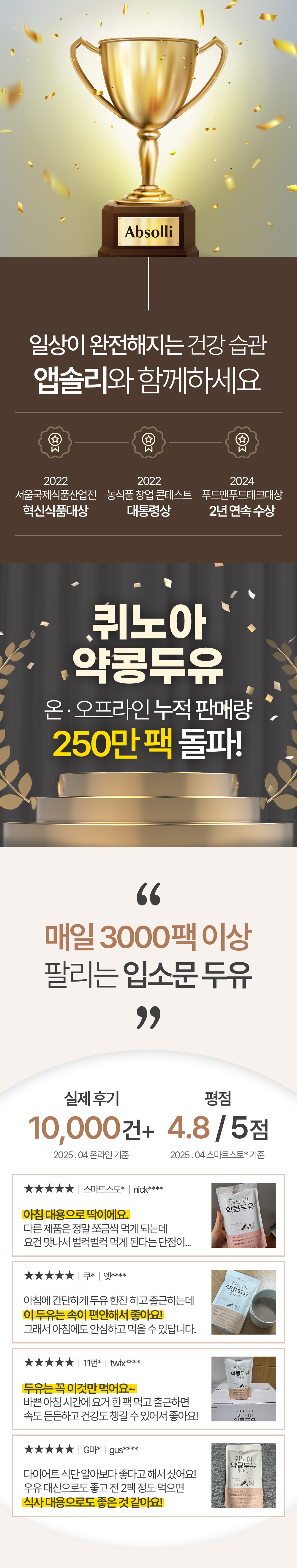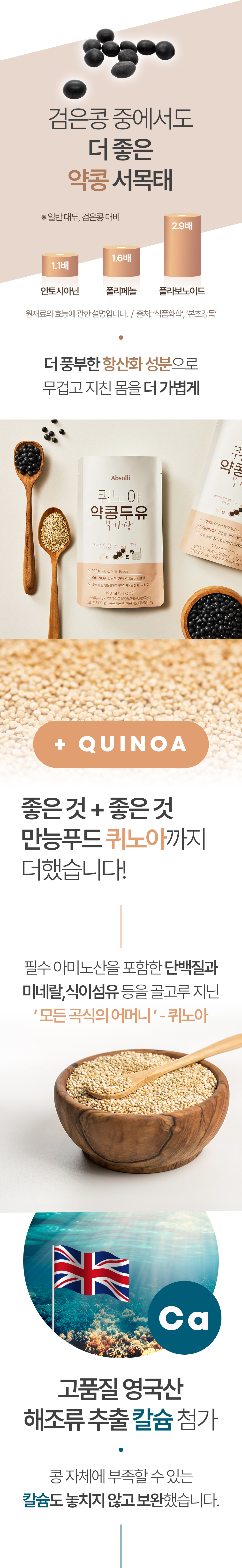 만능 푸드 퀴노아 첨가 국산 약콩 98.7% 프리미엄 두유