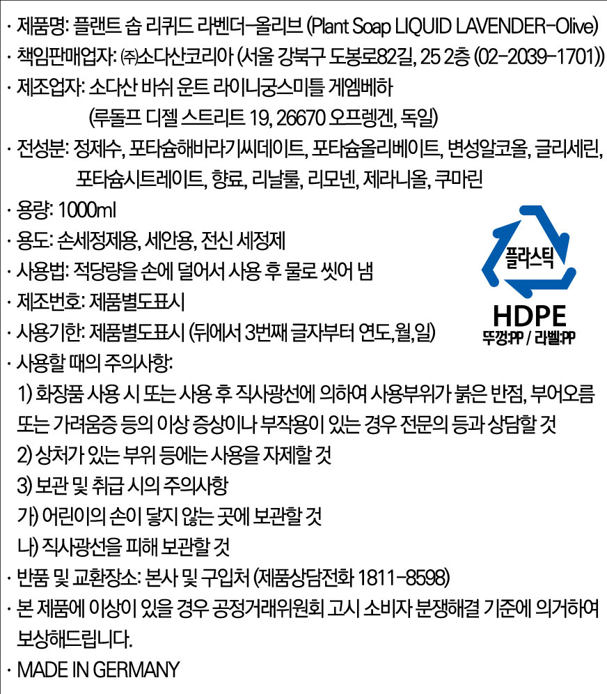 • [올인원워시]소다산 리퀴드 솝 라벤더 올리브 1000ml