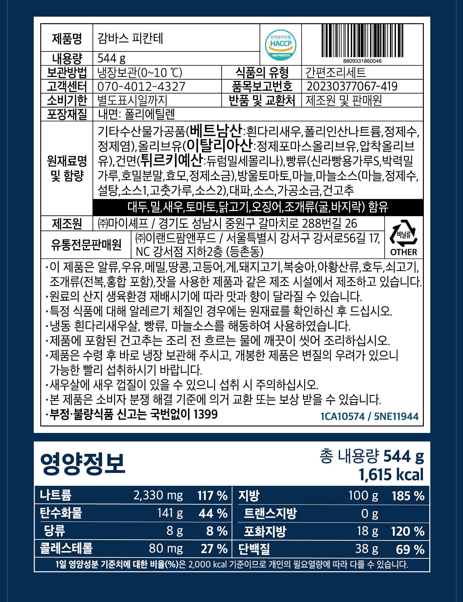 - 애슐리 감바스 피칸테(544g)