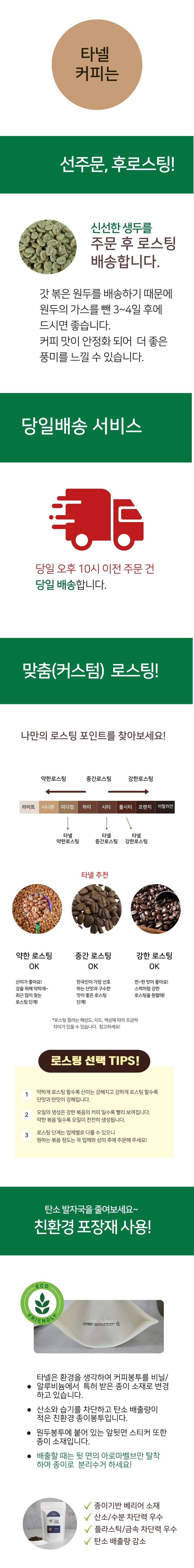 [타넬] 500g 디카페인커피 3종 당일로스팅 중간시티로스팅