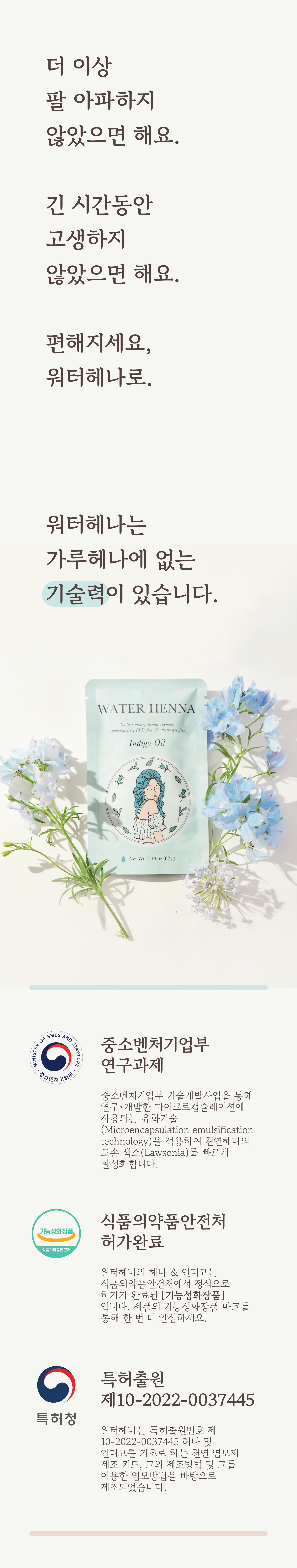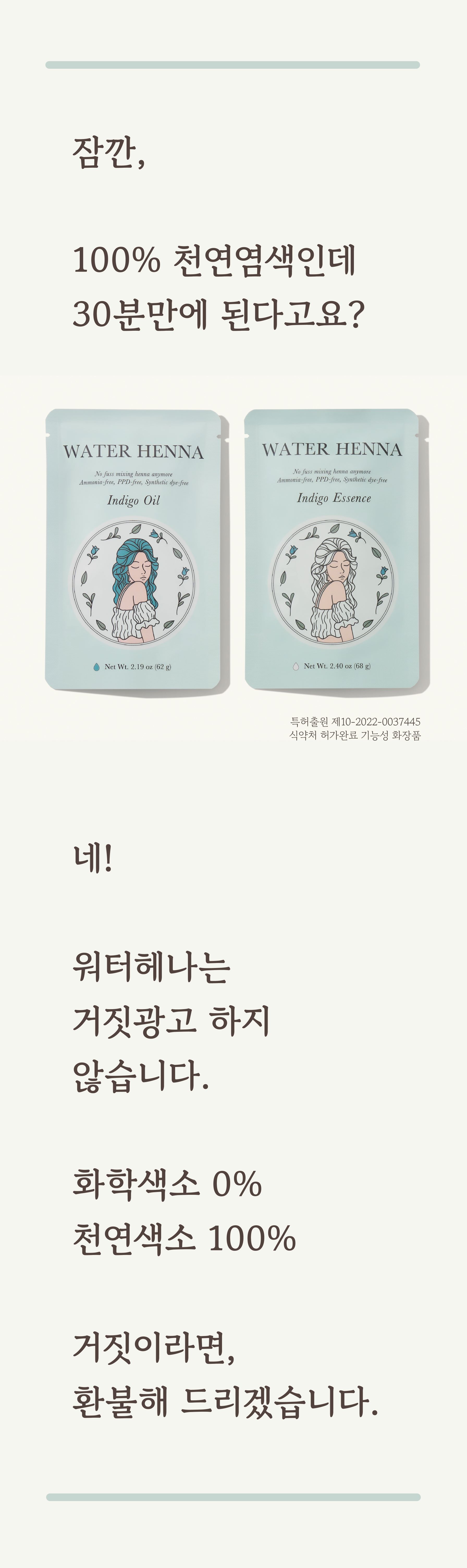 - 주의사항 가. (1)지금까지 헤나를 사용할 때 이상반응이 있었던 분 (2)패치테스트 결과 이상이 발생한 분 (3)두피, 얼굴, 목덜미에 부스럼, 상처, 피부병이 있는 분 (4)출산 후 병중, 병후의 회복 중인 분 (5)특이체질, 신장질환, 혈액질환이 있는 분은 사용을 자제해 주십시오 나. (1)염색 48시간 전 패치테스트를 반드시 실시하여 주십시오 (2)눈썹 및 속눈썹은 눈과 가까우므로 염색을 자제하고, 눈에 들어갔을 시 흐르는 물에 잘 씻으십시오 (3)손에 색이 물들 수 있으므로 장갑을 사용하십시오 (4)면도 직후에는 염색을 자제하십시오 (5)헤나 시술 전후 일주일간은 파마를 하지 말아주십시오 다. (1)화장품 사용 시 또는 사용 후 직사광선에 의하여 사용부위가 붉은 반점, 부어오름 또는 가려움증 등의 이상 증상이나 부작용이 있는 경우 전문의 등과 상담하십시오 (2)상처가 있는 부위 등에는 사용을 자제하십시오 (3)보관 및 취급시 어린이의 손에 닿지 않는 곳에 보관하고, 직사광선을 피해 보관하십시오