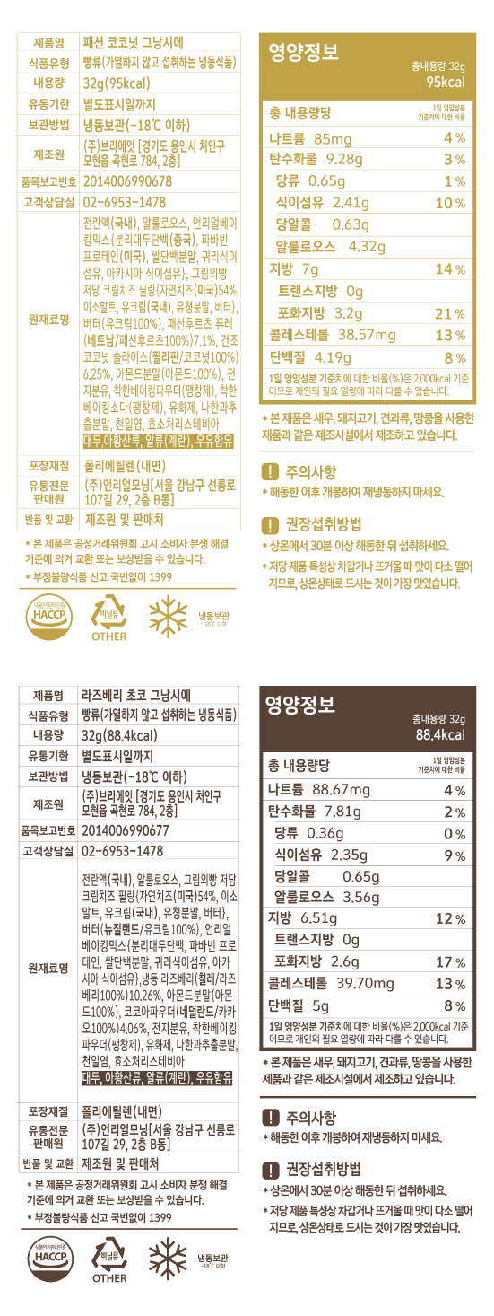 본 제품은 새우, 돼지고기, 견과류, 땅콩을 사용한 제품과 같은 제조시설에서 제조하고 있습니다. 본 제품은 공정거래위원회 고시 보시자 분쟁 해결 기준에 의거 교환 또는 보상받을 수 있습니다. 해동한 이후 개봉하여 재냉동하지 마세요. 부정불량식품 신고 국번없이 1399.