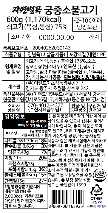 - 자연별곡 궁중 소불고기(호주산,600g)