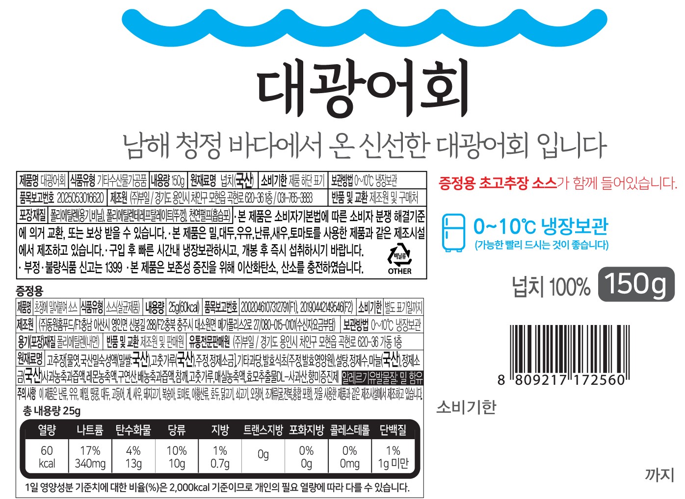 두툼한 대광어회(150g) 수량빼기 수량추가 16,900 원 총 수량 1 개 16,900 원 구매옵션 닫기 찜하기 추가 찜하기 삭제 구매후기 5,410 상품상세 정기구독 장바구니 정기구독 장바구니 구매하기 정기배송 장바구니