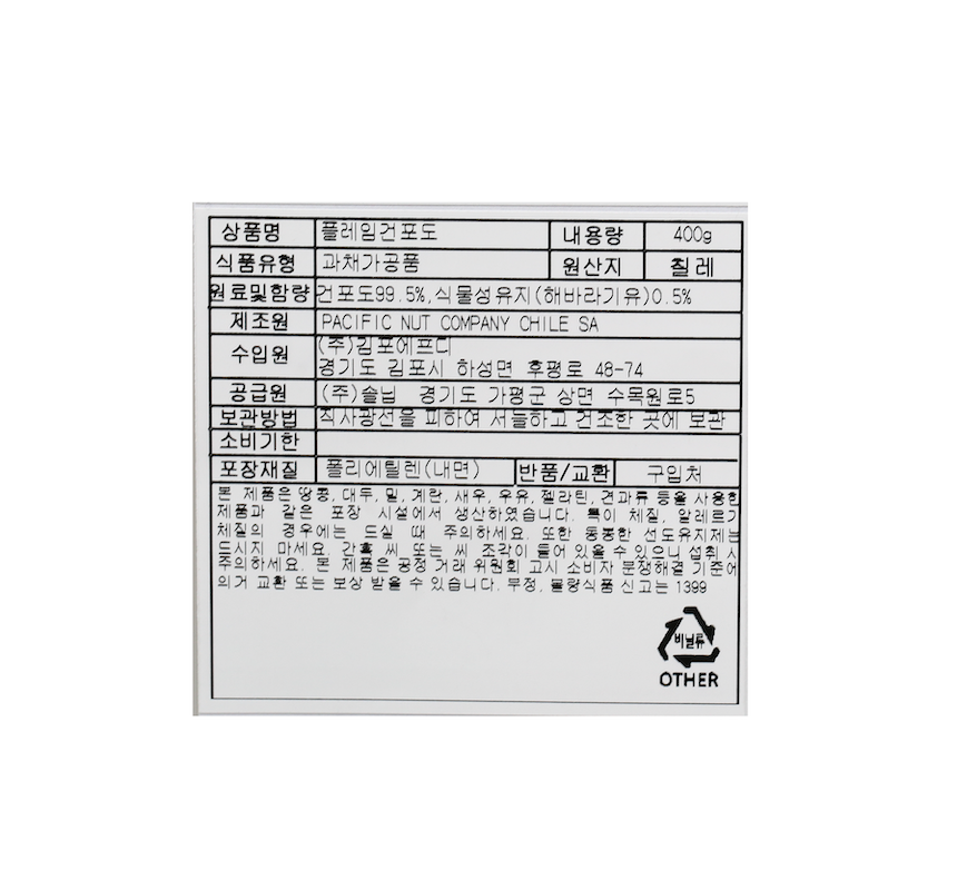 본 제품은 공정거래위원회 고시 소비자 분쟁 해결 기준에 의거 교환 또는 보상 받을 수 있습니다. - 본 제품은 땅콩, 견과류 등을 사용한 제품과 같은 포장시설에서 생산하였습니다. - 땅콩 등 견과류에 알레르기 반응이 있는 분들이 섭취할 경우 알레르기 증상을 일으킬 수 있으니 주의하시기 바랍니다. (부정.불량식품 신고는 국번없이 1399)