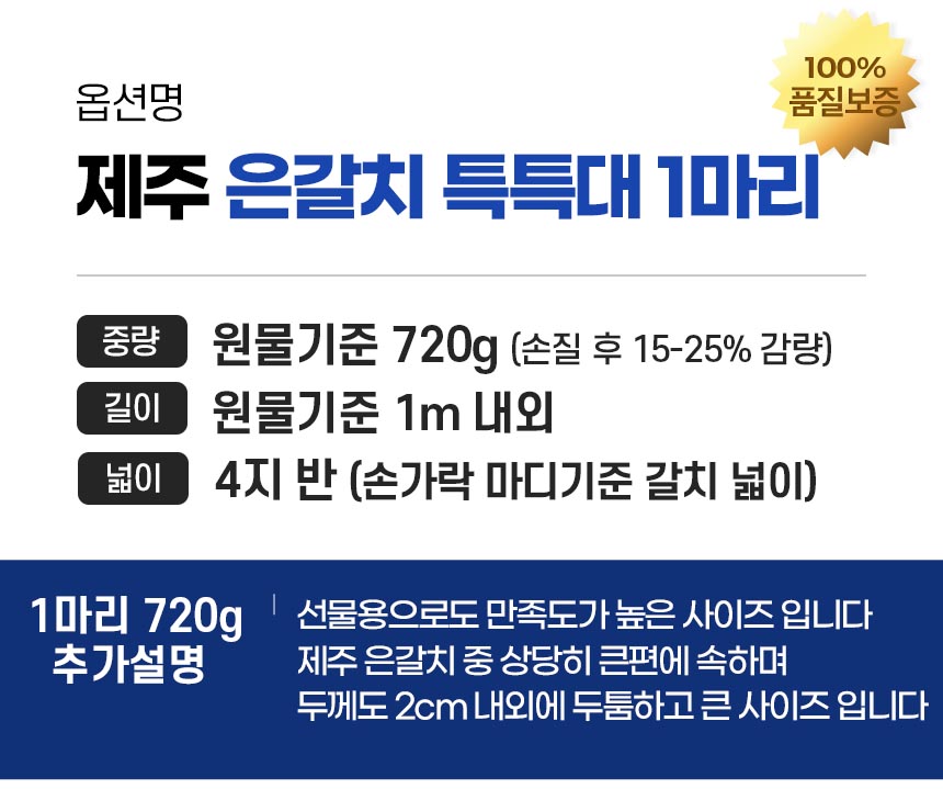 제주은갈치1마리360g(대) / 제주은갈치1마리480g(특대) / 제주은갈치1마리600g(특특대) / 제주은갈치1마리720g(특특대)
