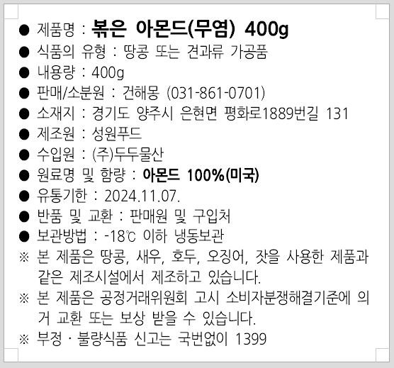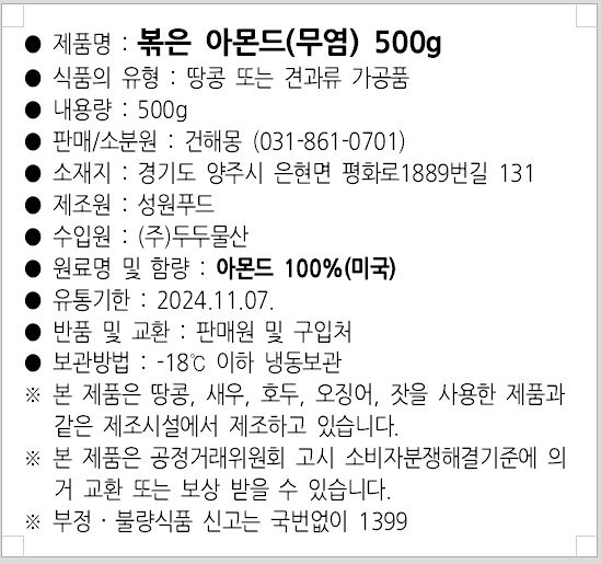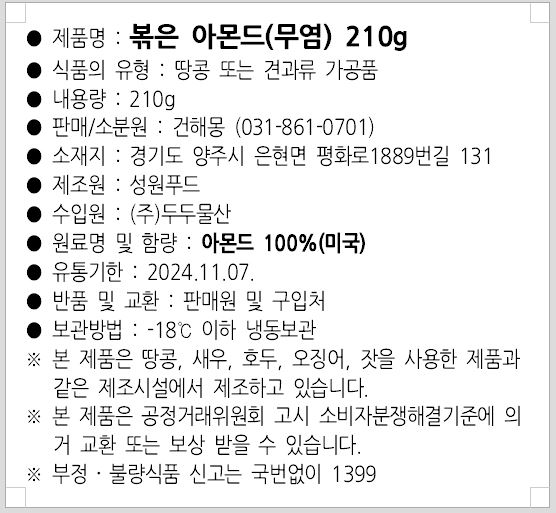 [1+1] 건해몽 최상급 구운아몬드 210g / 400g / 500g