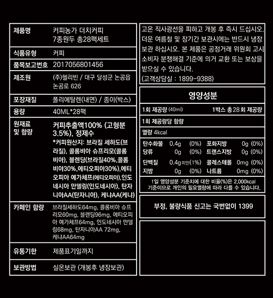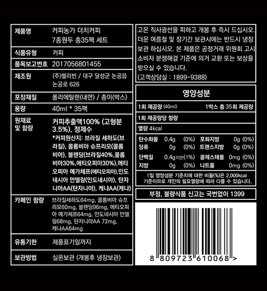상품명 커피농가 더치커피 7종원두 28팩/35팩세트