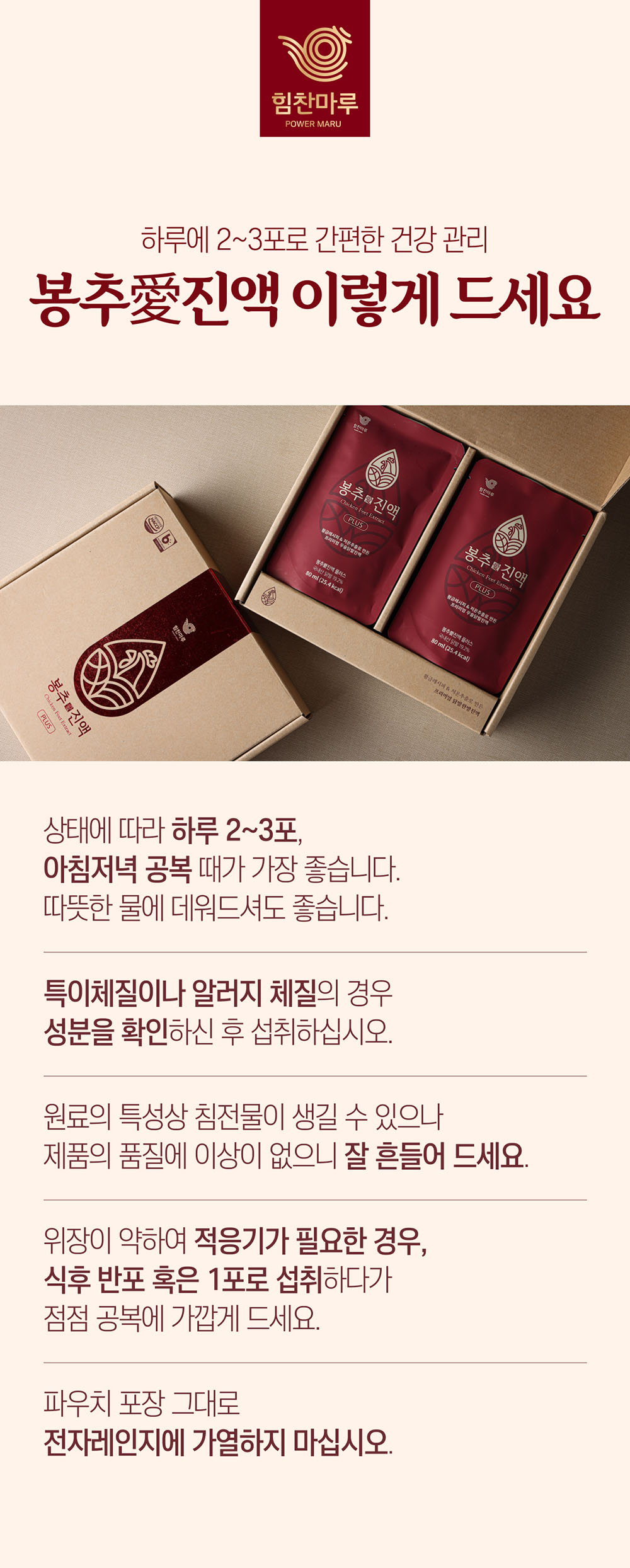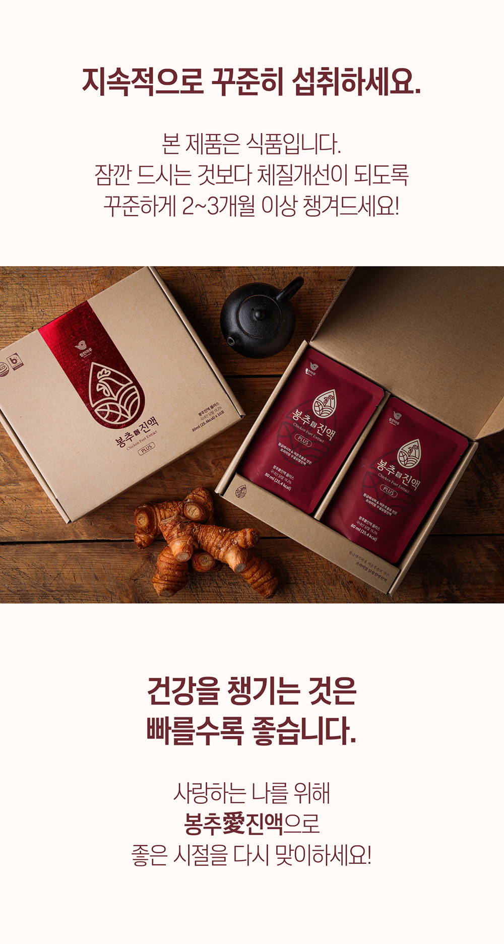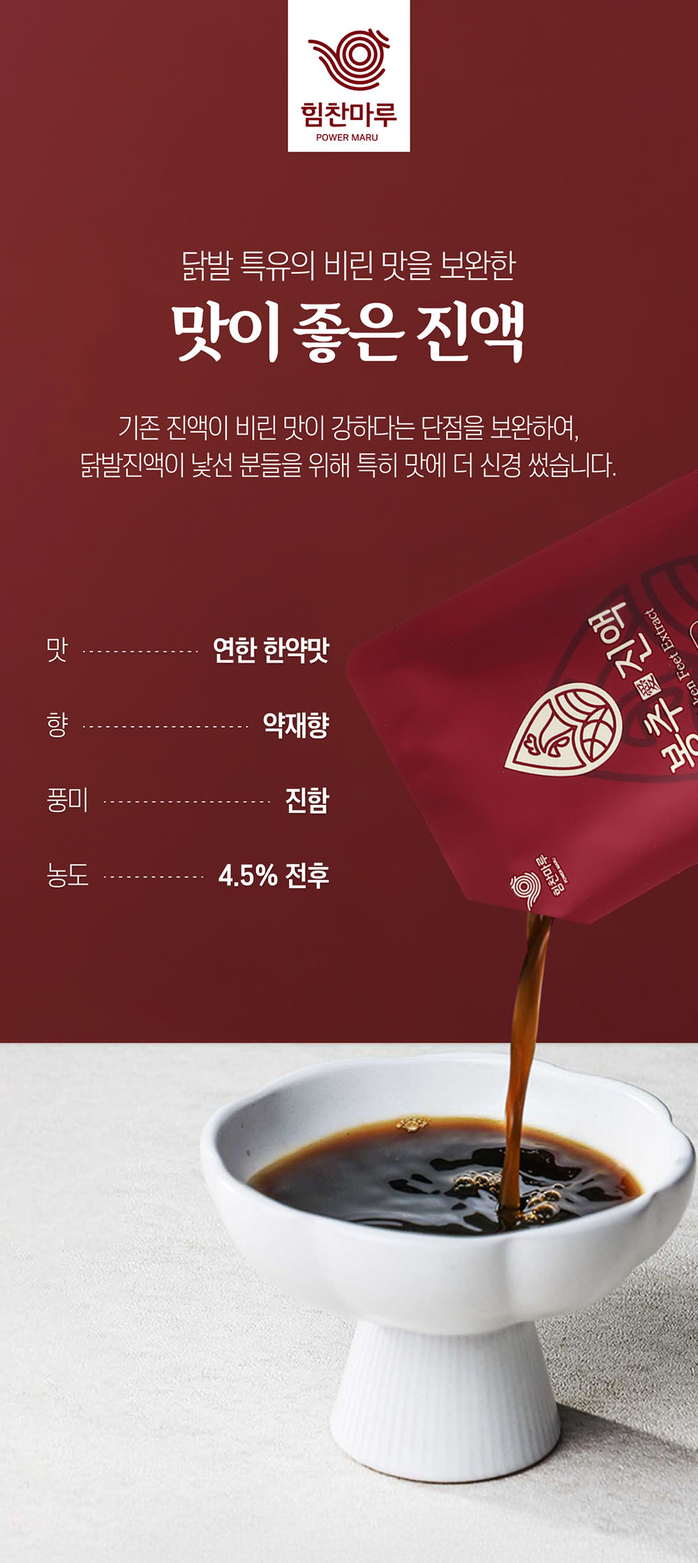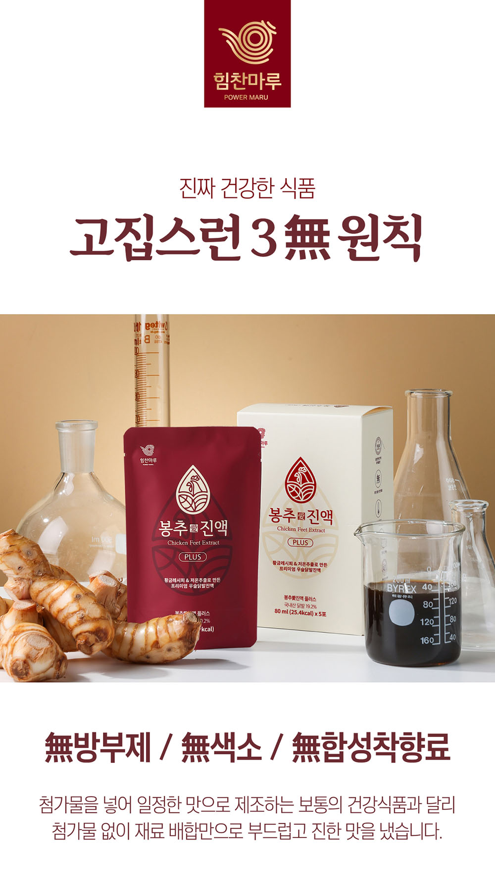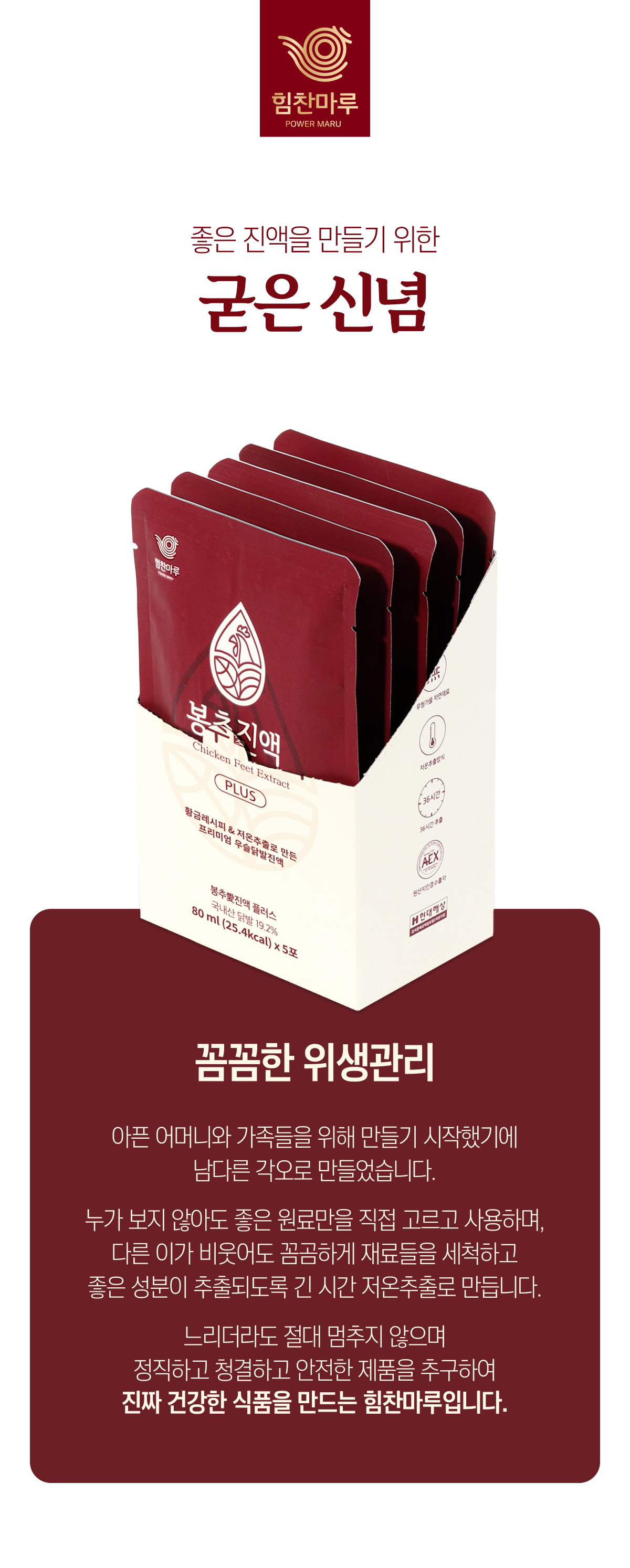 기존 봉추진액에 갈랑가(Galanga)를 넣어 더 건강해진 봉추진액 플러스는 봉추진액의 '풍미'는 그대로 '건강'은 플러스 한 최고급 프리미엄 닭발 진액 제품입니다.