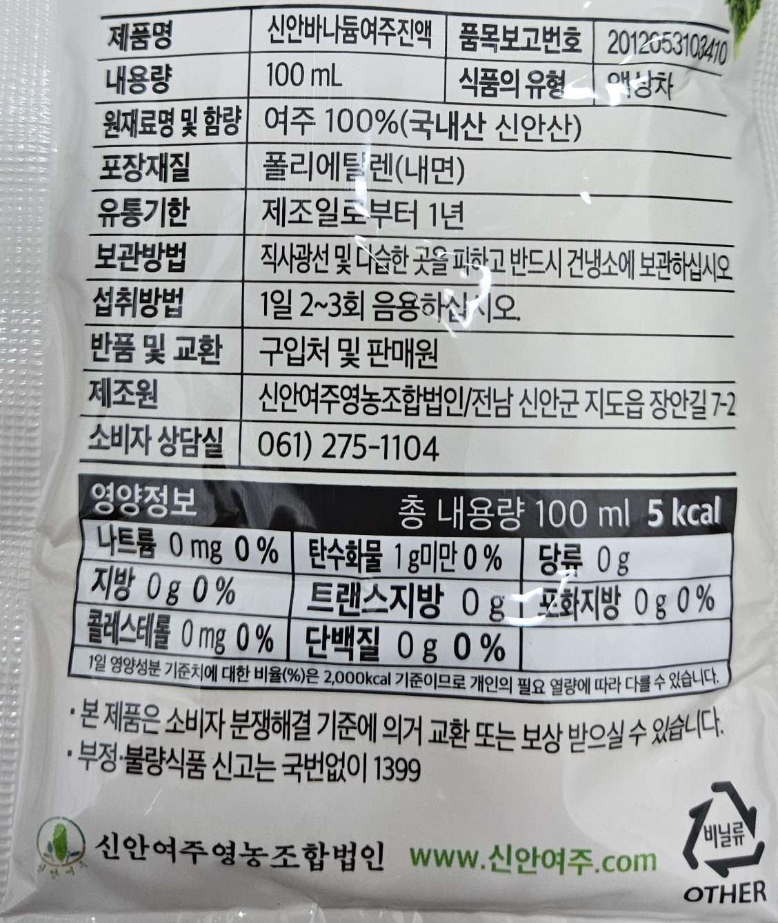 신안여주영농조합에서 정성을 다해 100% 국내산 , 100% 순수 원료로 만든