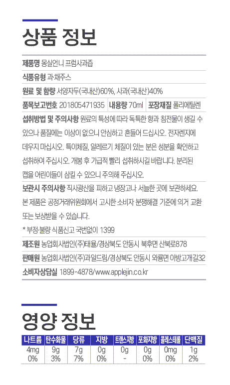 • 몽실언니 프럼사과즙 (70ml 30봉)
