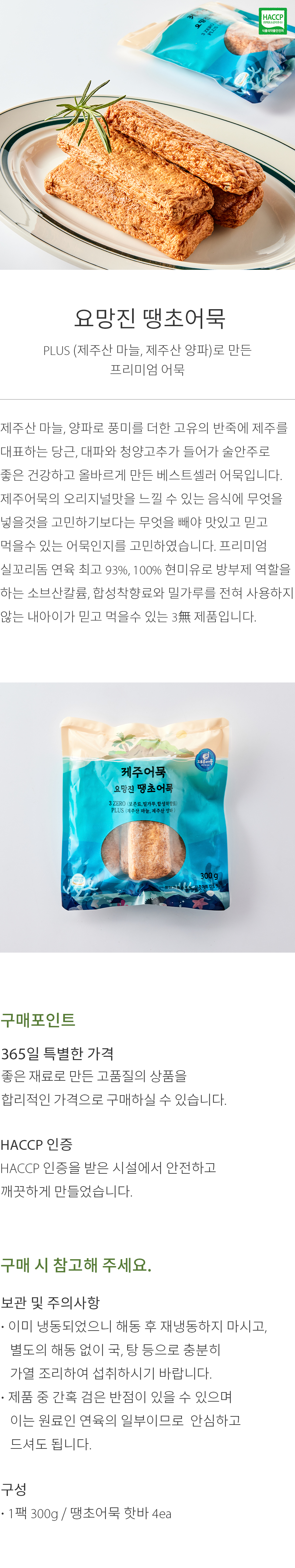 제주 요망진 땡초어묵 (300g 이상) 수량빼기 수량추가 봉지 8,200 원 총 수량 1 개 8,200 원 구매옵션 닫기 찜하기 추가 찜하기 삭제 구매후기 132 상품상세 정기구독 장바구니 정기구독 장바구니 판매종료 정기배송 장바구니