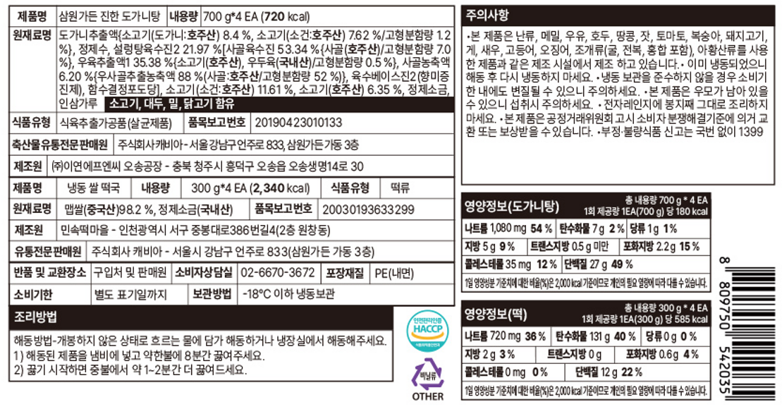 - [삼원가든] 진한 도가니탕 떡국 선물세트 1호