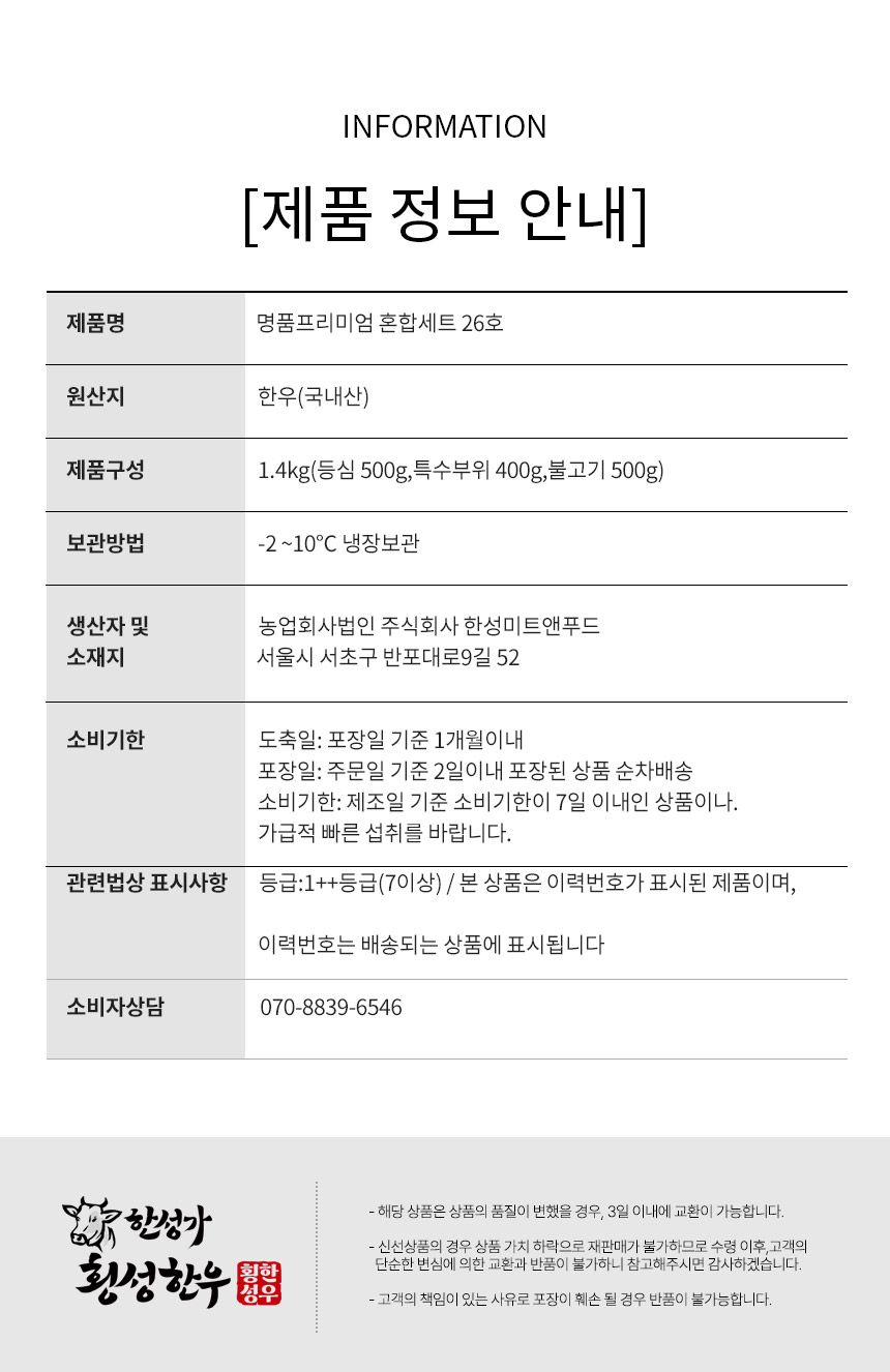 - 등급:1++등급(7이상) / 본 상품은 이력번호가 표시된 제품이며, 이력번호는 배송되는 상품에 표시됩니다