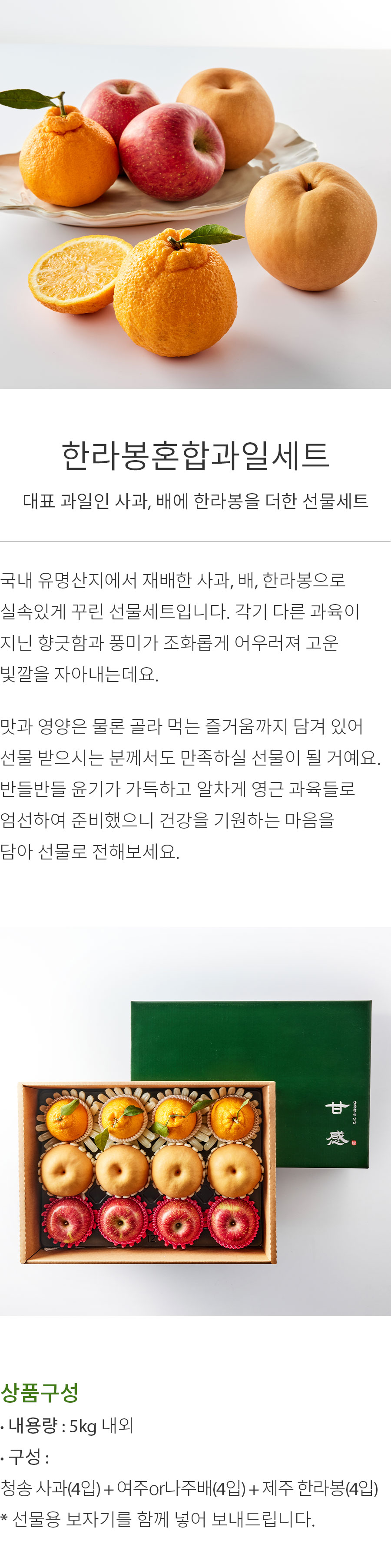 [설선물 마음전송]VIP 한라봉혼합과일세트(5kg내외/사과4입+배4입+한라봉4입)