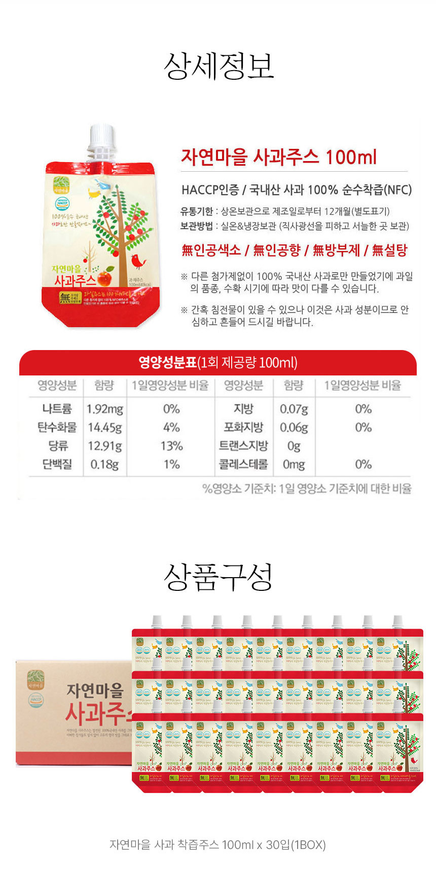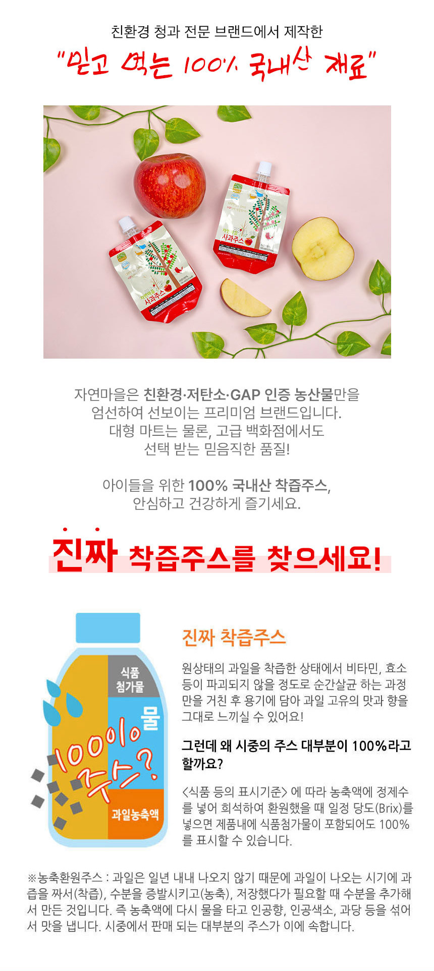 • 자연마을 NFC 착즙원액주스 과일주스 8종 (100ml 30팩)
