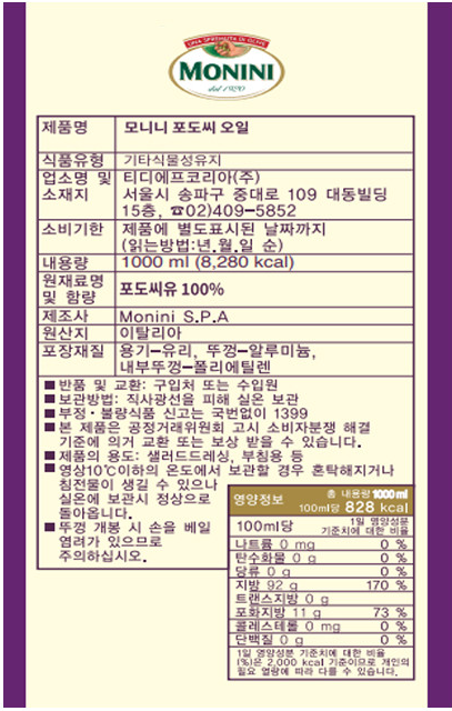 모니니 포도씨유(1L)
