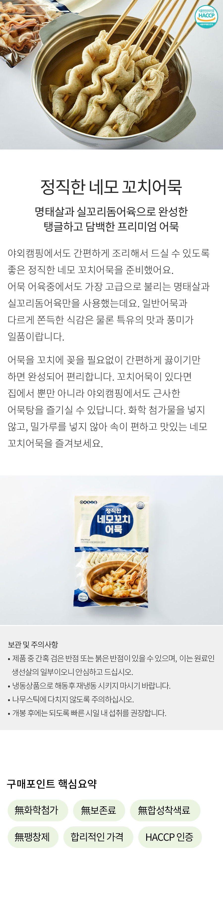 정직한 네모 꼬치어묵 (320g/10개입) 수량빼기 수량추가 6,900 원 총 수량 1 개 6,900 원 구매옵션 닫기 찜하기 추가 찜하기 삭제 구매후기 2,412 상품상세 정기구독 장바구니 정기구독 장바구니 구매하기 정기배송 장바구니