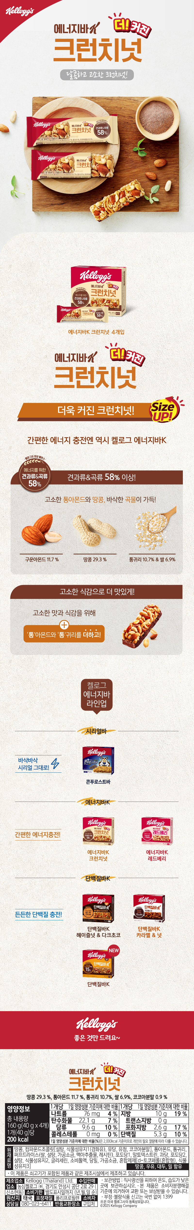 [1+1] 크런치넛 에너지바 (40gX4입) 수량빼기 수량추가 6,690 원 총 수량 1 개 6,690 원 구매옵션 닫기 찜하기 추가 찜하기 삭제 구매후기 1,165 상품상세 정기구독 장바구니 정기구독 장바구니 구매하기 정기배송 장바구니