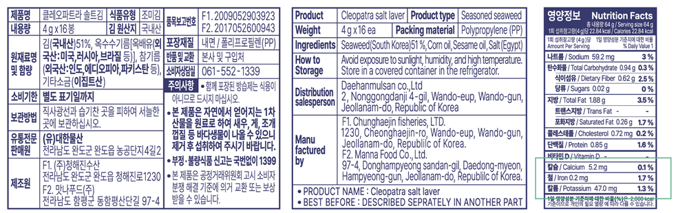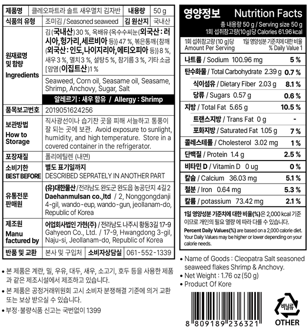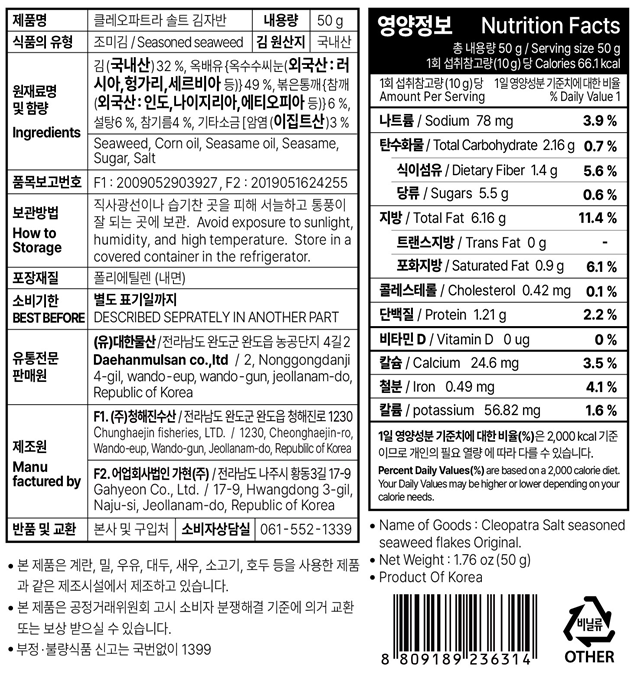 클레오파트라 솔트 조미김 16봉, 김자반 3종