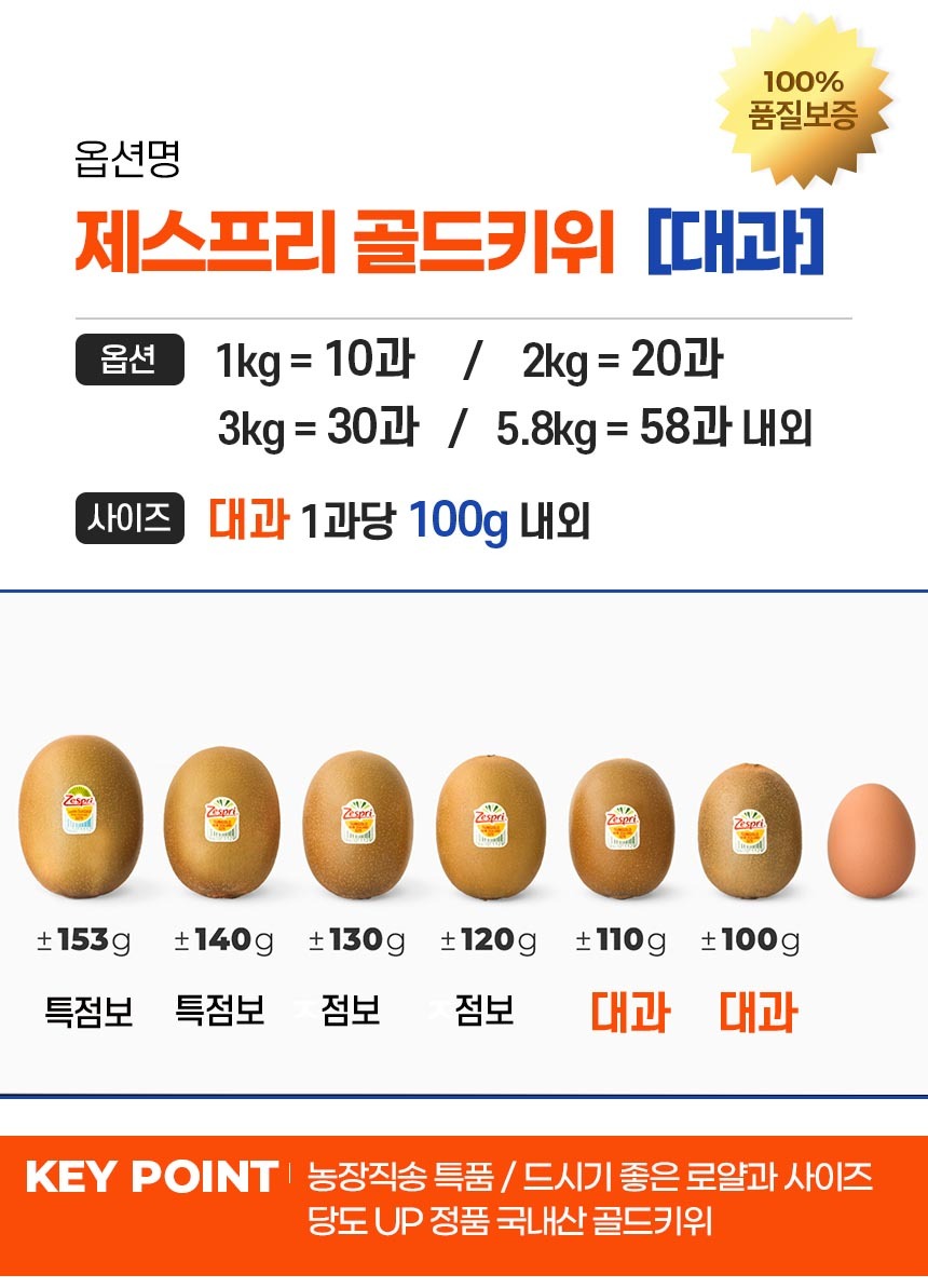 제스프리 골드키위 대과 1개당 100g 내외 1-2kg