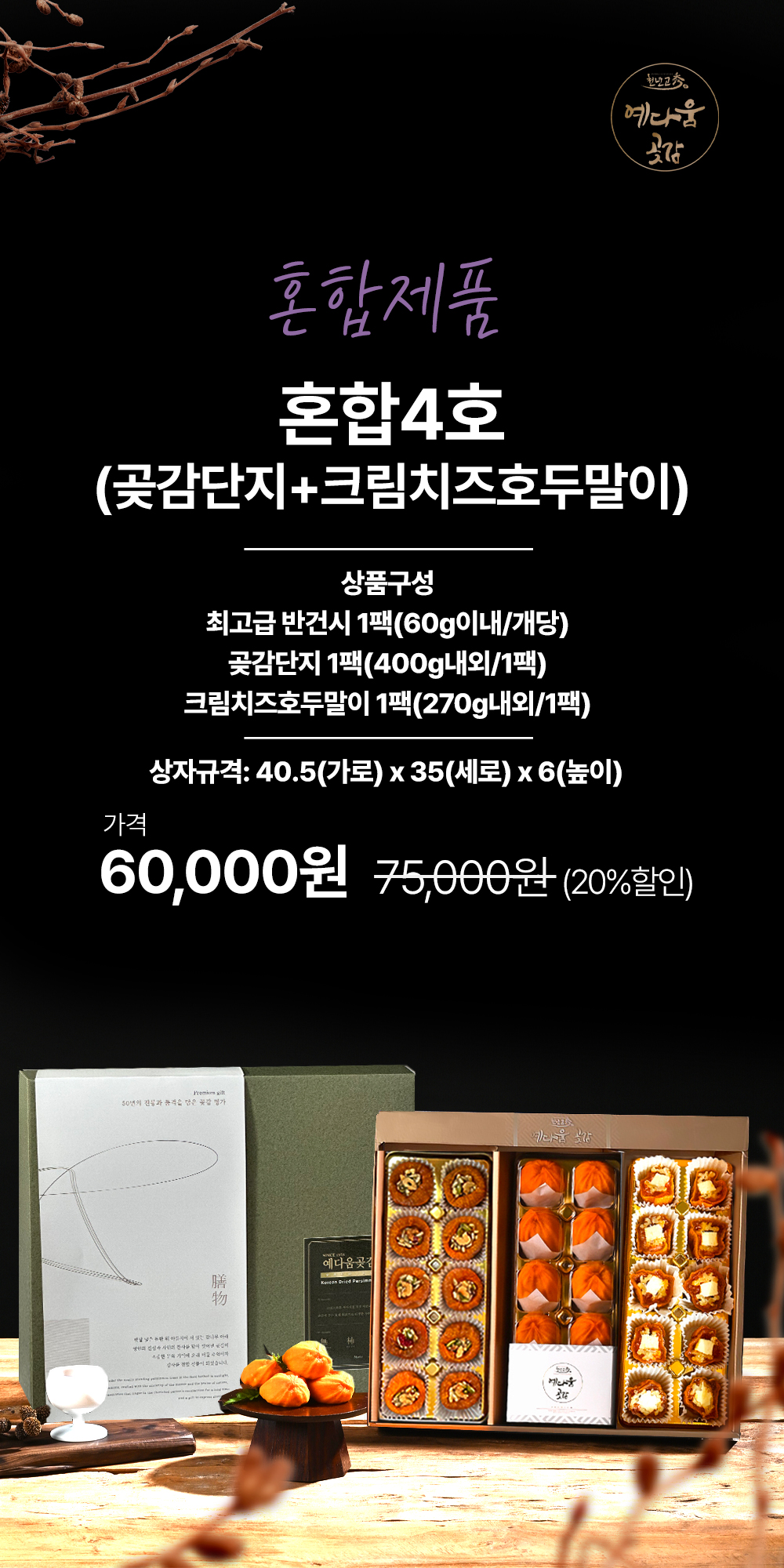 반건시(60g이내) 10과+ 곶감단지 1팩(470g내외)+크림치즈호두말이 1팩(270g내외)