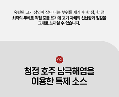 - 청정 호주남극해염을 이용한 특제 소스로 깊은 풍미의 갈비 본연의 맛을 재현했습니다.
