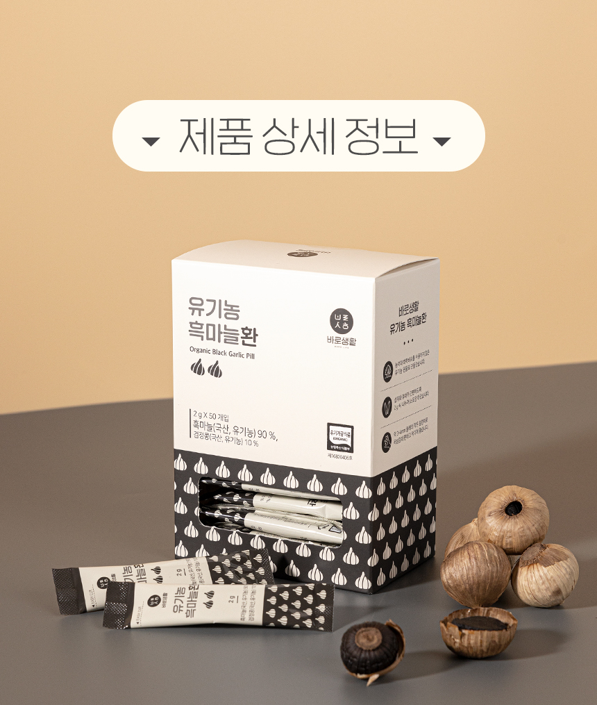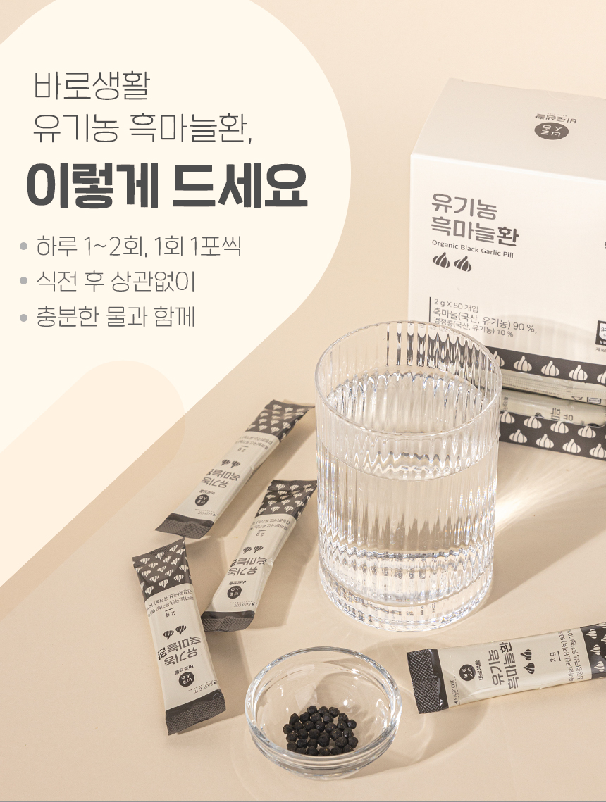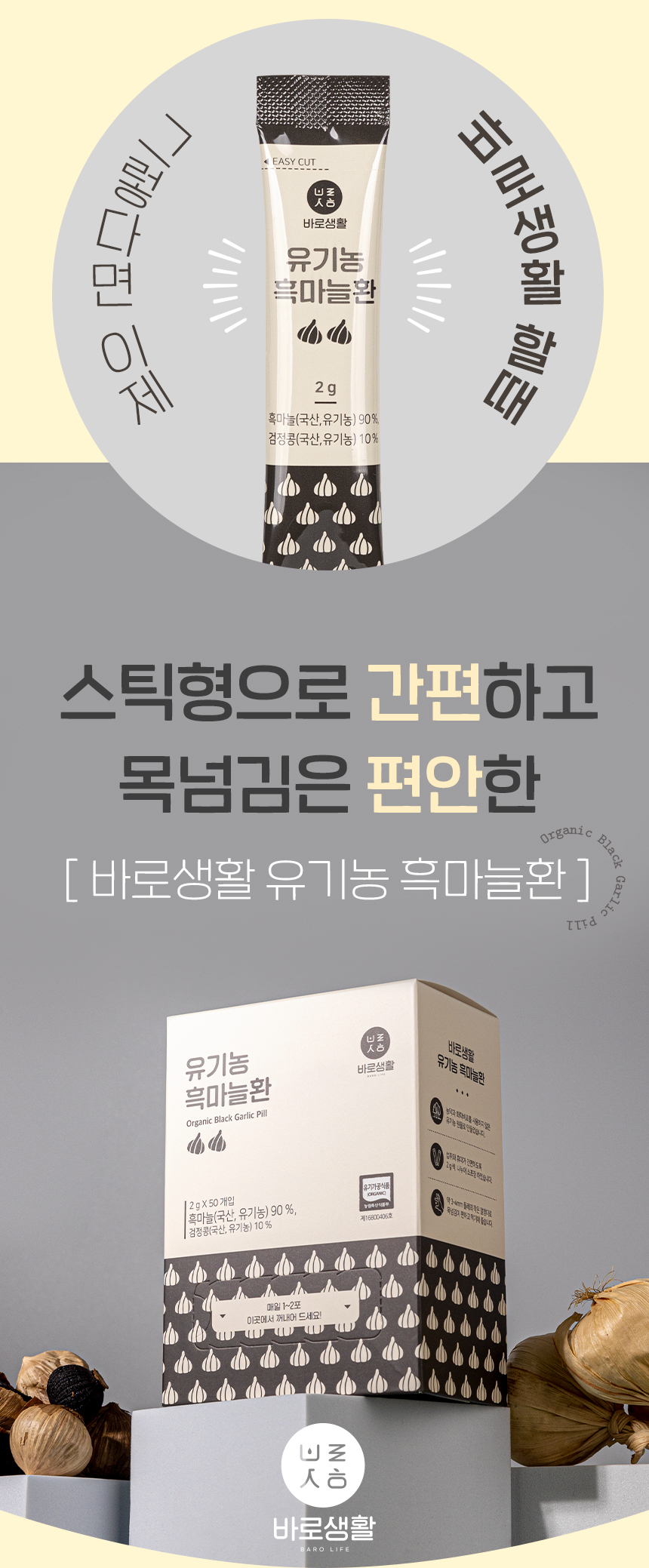 바로생활 국내산 유기농 흑마늘환 스틱 50포 1박스/2박스 선택