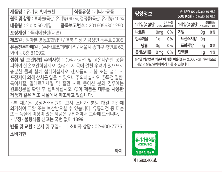 흑마늘(국산, 유기농)90%, 검정콩(국산, 유기농)10%