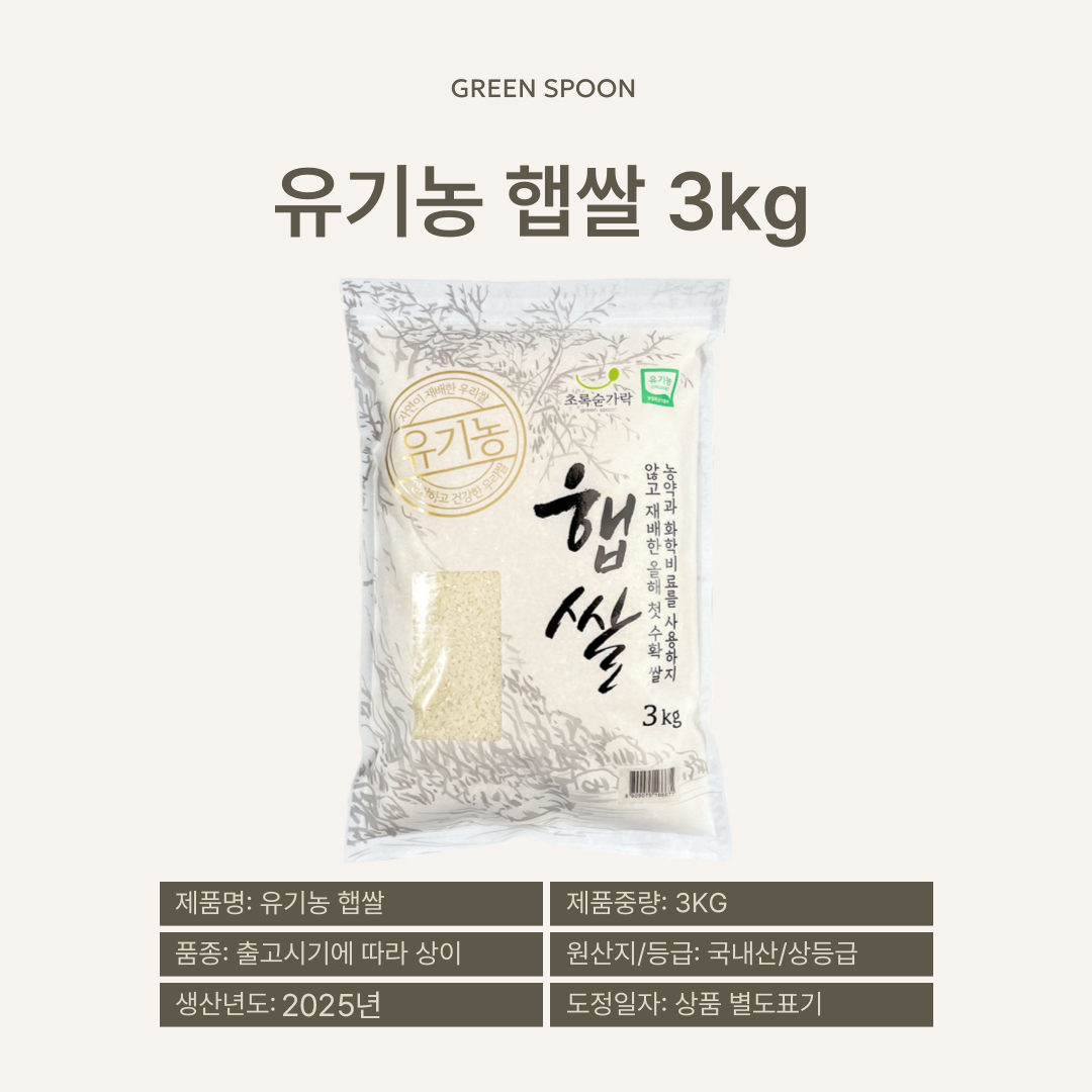 [초록숟가락] 유기농 햅쌀 1kg/2kg/3kg/4kg/10kg