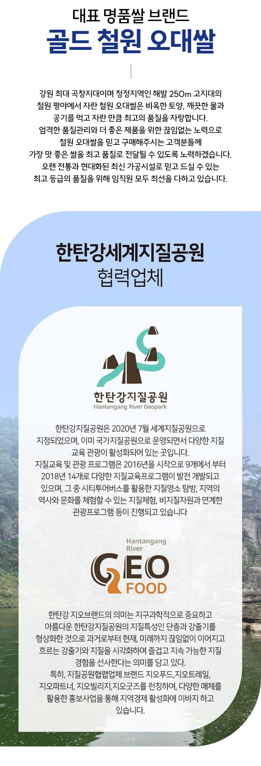 해발고도250m 철원평야에서 자란 쌀, 유네스크 한탄강세계지질공원 협력업체 지오푸드