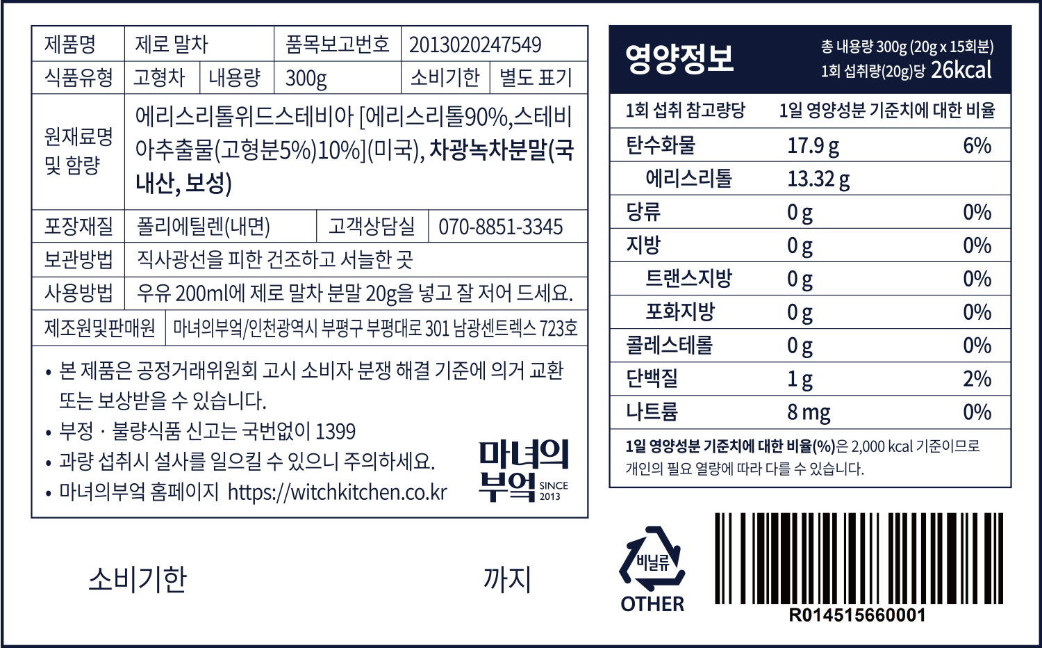 에리스리톨위드스테비아[에리스리톨90%, 스테비아추출물(고형물5%)10%](미국),차광녹차분말(국내산,보성)
