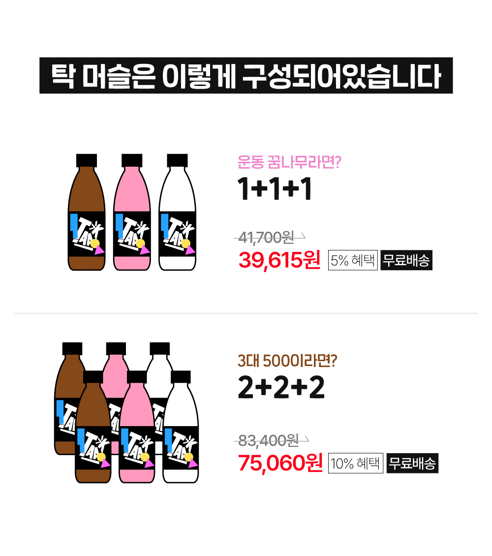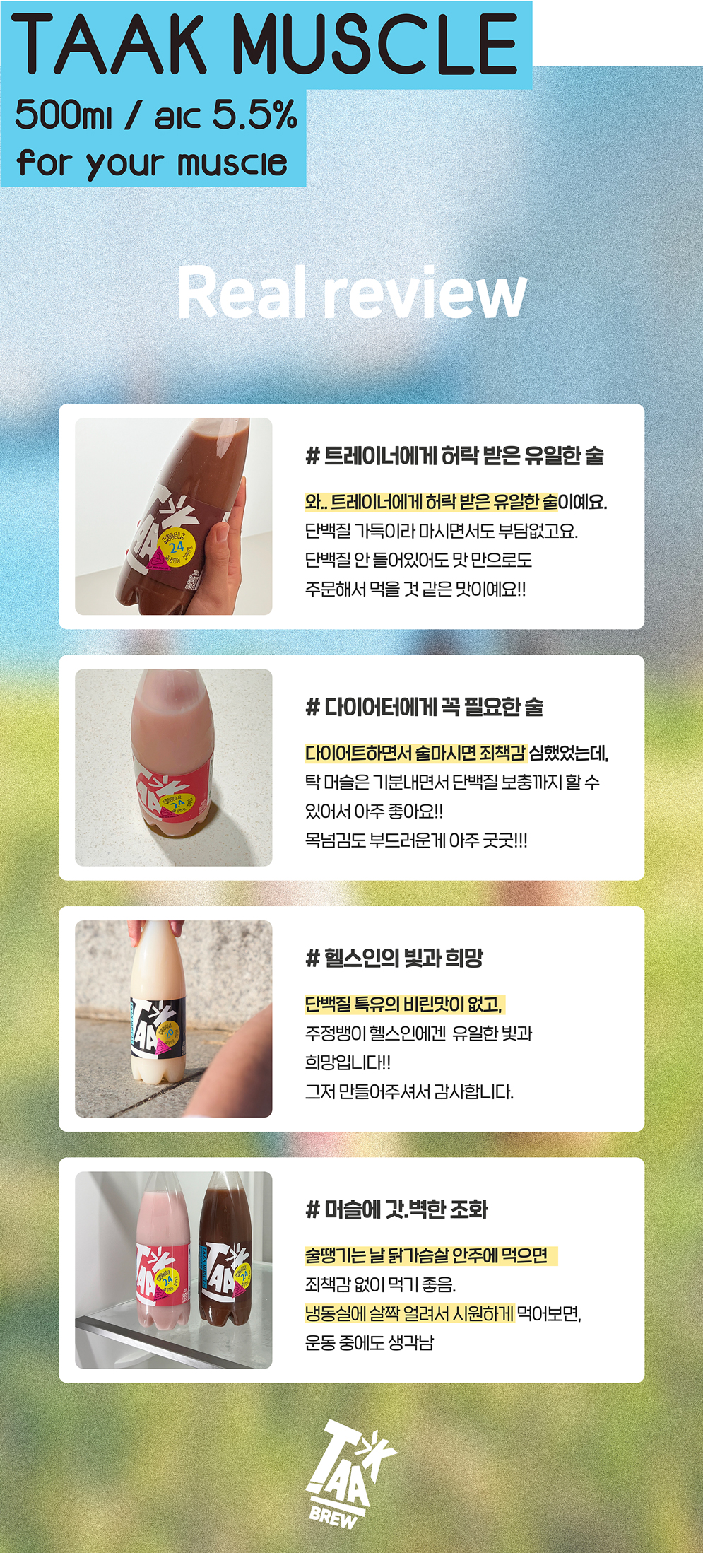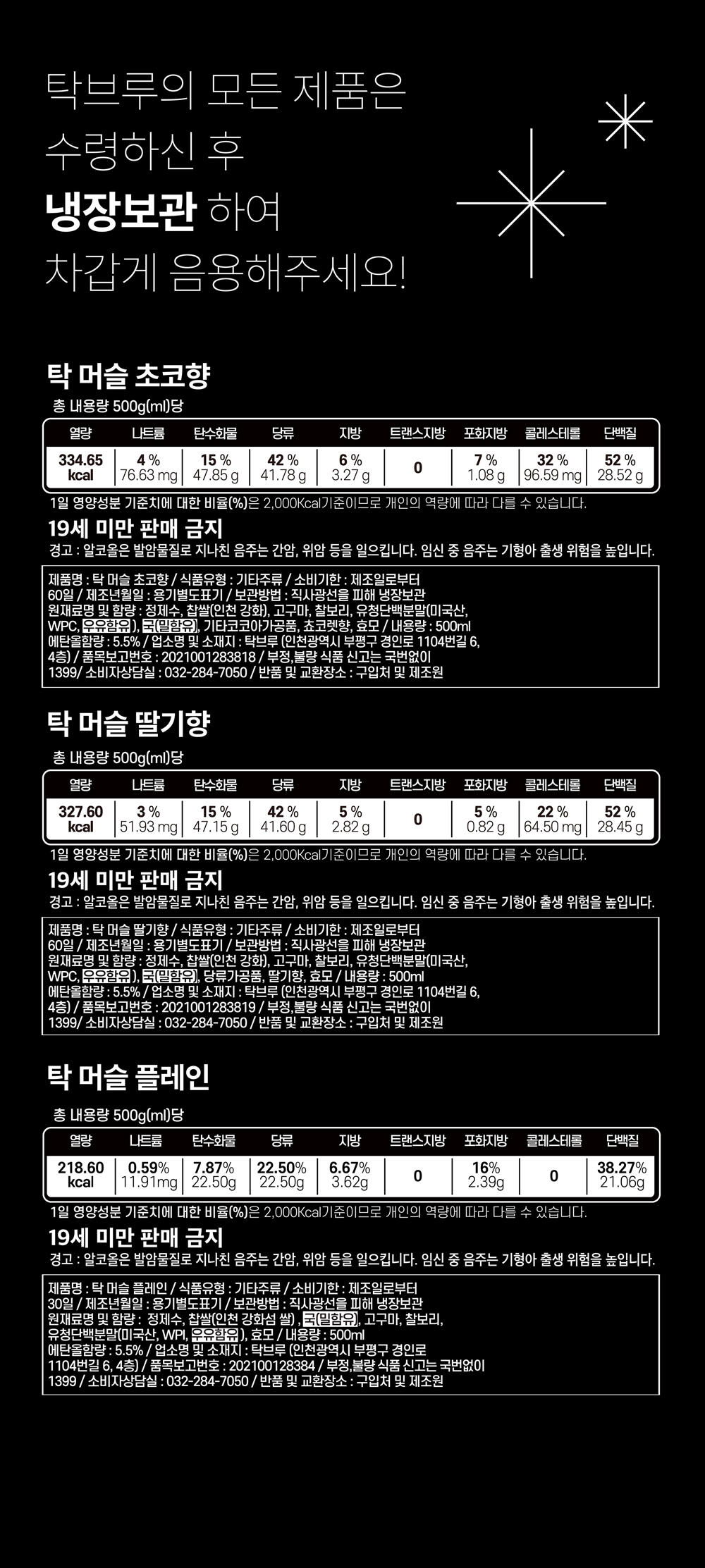 • 고단백 프로틴전통주, 탁머슬 초코/딸기/플레인 500ml, 5.5%,