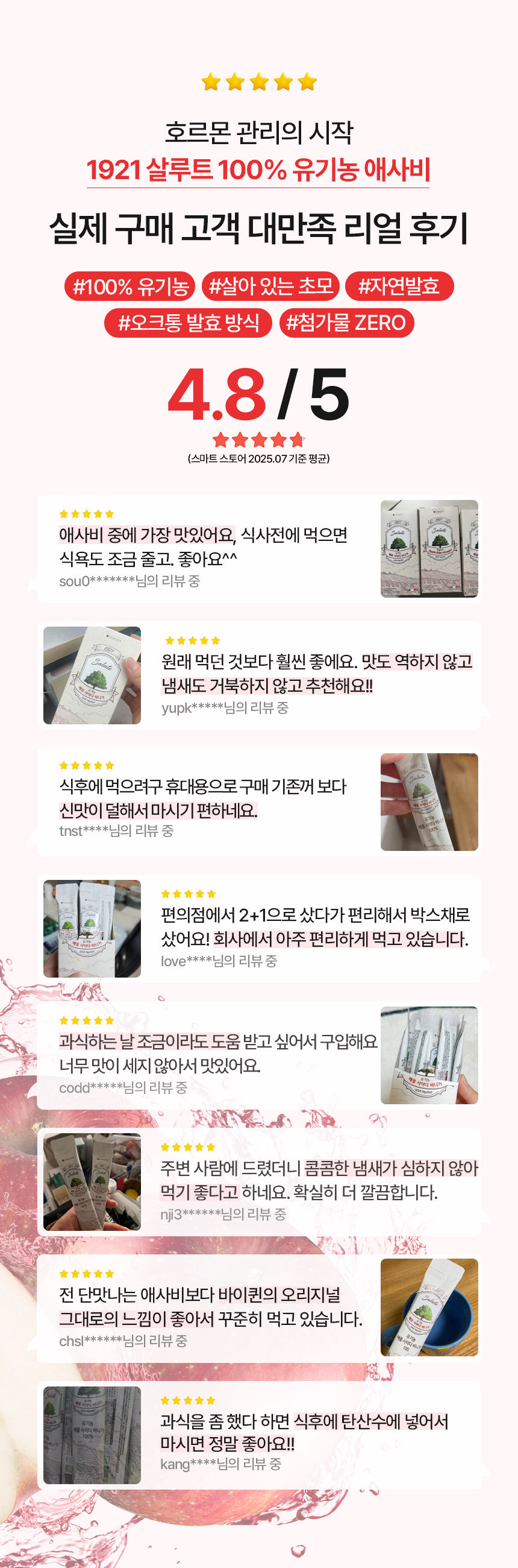 • 바이퀸 1921살루트 사과식초 유기농 100% 애사비 스틱 2박스(30포)