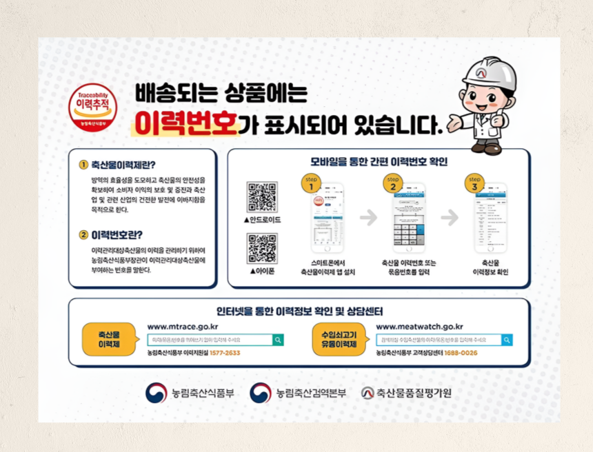 축산법에 따른 등급 표시, 쇠고기의 경우 이력 관리에 따른 표시 있음