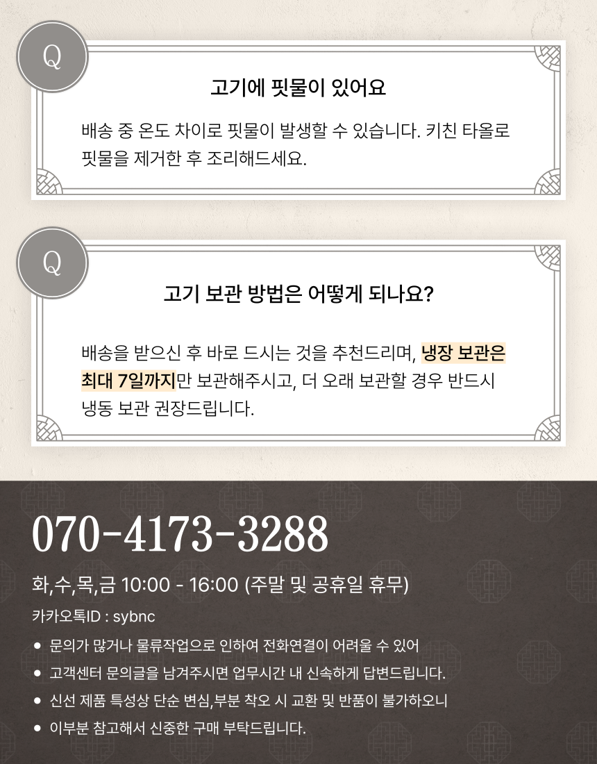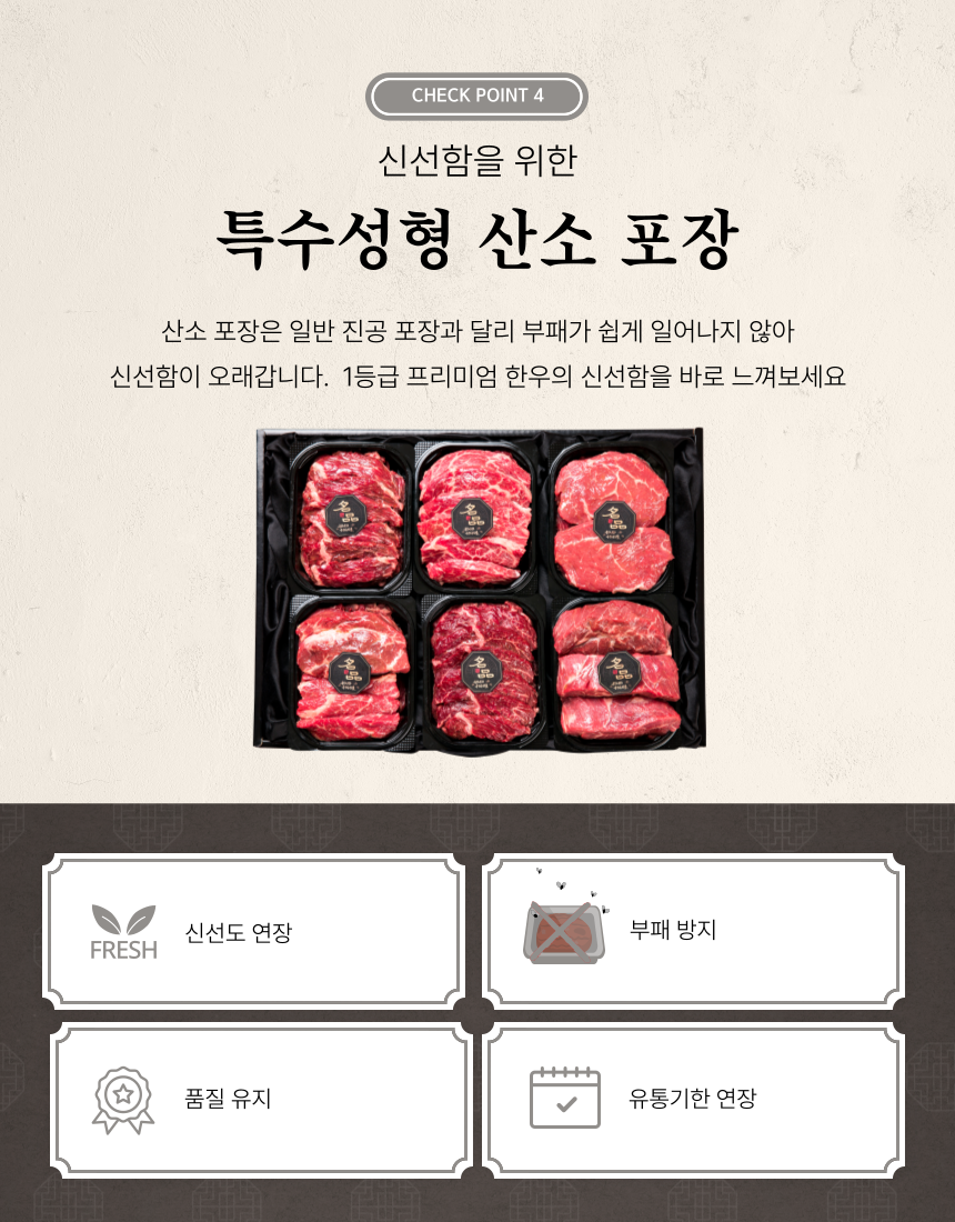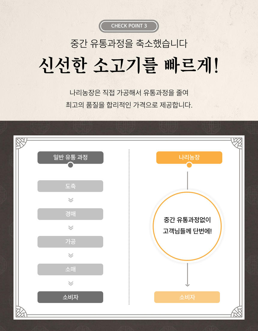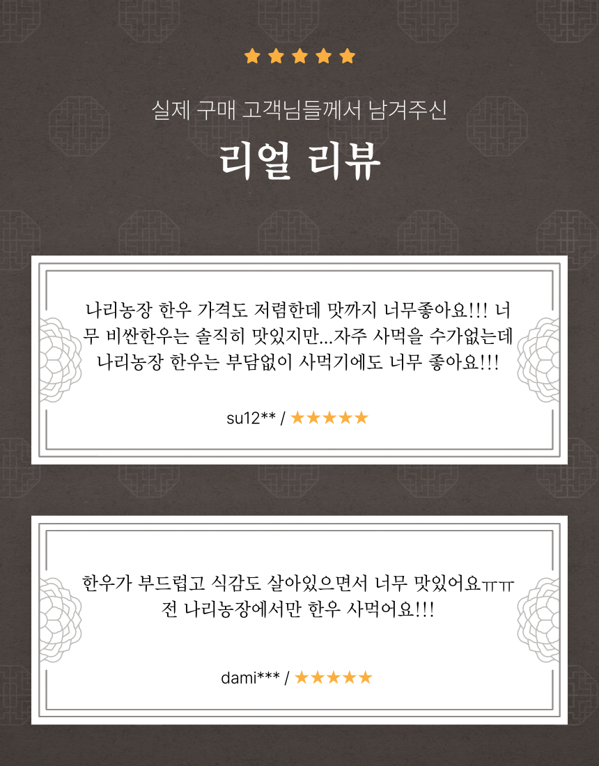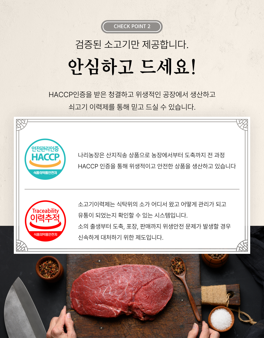 1. 믿을 수 있는 품질 : 공정하고 엄격한 기준을 갖춘 농협의 지육만을 제공받고 있습니다.