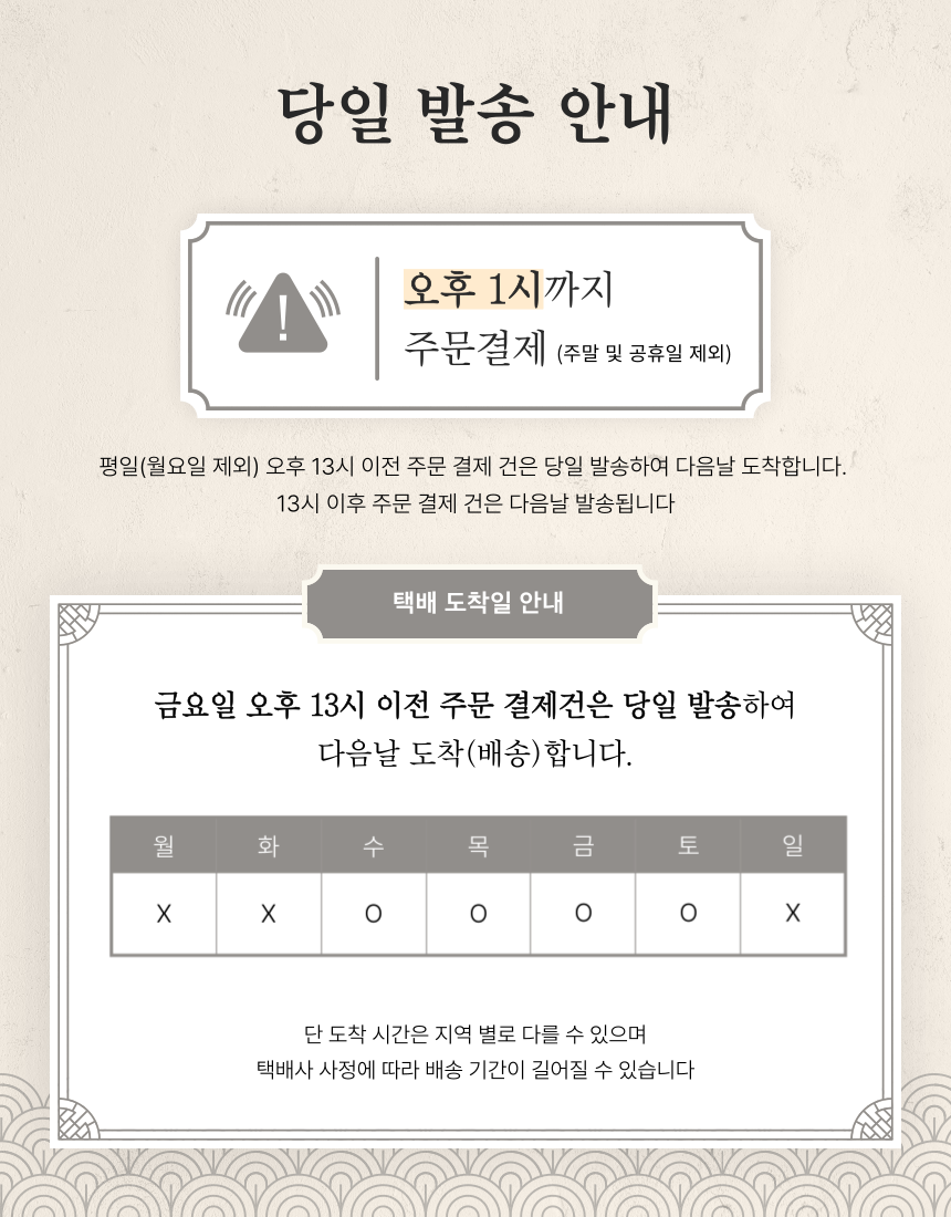 배송일 당일(혹은 1일전) 신선식품 포장 / 제품 별도 표기일까지(출고 전 유통기한을 확인 후 상품을 배송하니 안심하세요.)