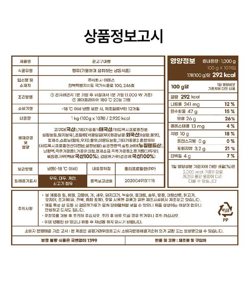 • 빵 1개당 국산고구마1개! 진짜 리얼 고구마빵 (100g x 10개)